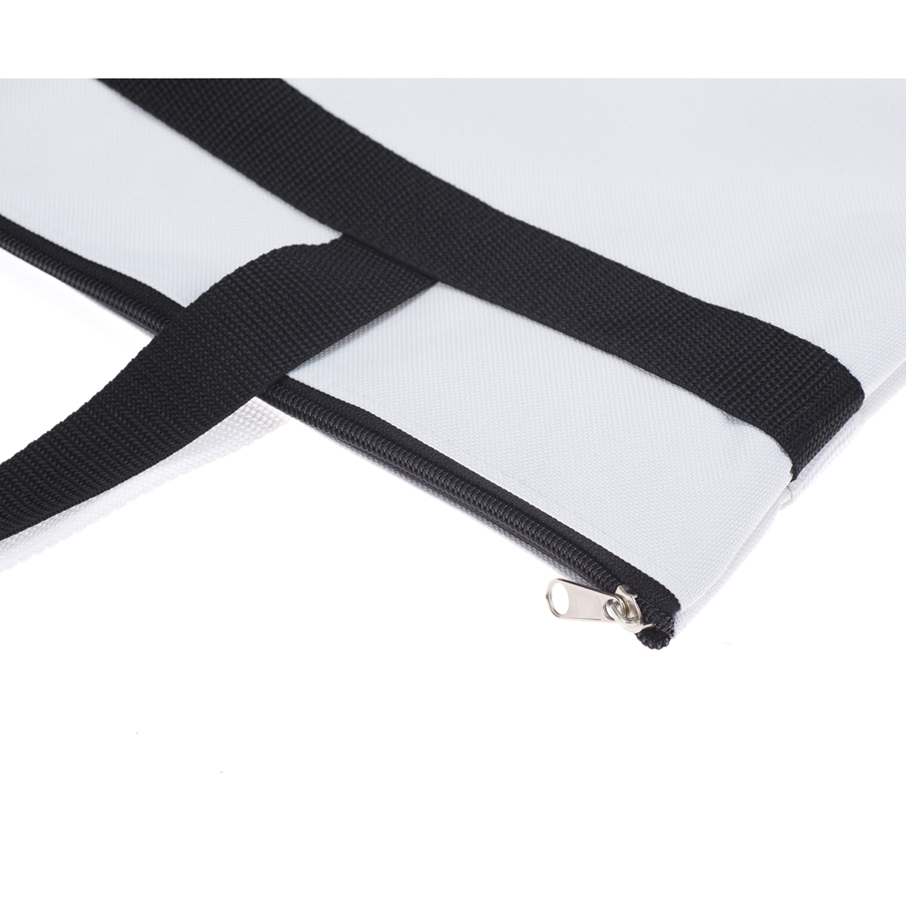 Вместительная сумка Dewal C6-18 white/black черно-белого цвета для хранение и переноски парикмахерских инструментов. Изготовлена из полимерного материала, имеются две удобные ручки среднего размера, длина ручки составляет 30 см. Сумка Dewal закрывается на один замок. Благодаря мягкой форме вмещает в себя достаточно много вещей. Сумка легко стирается, долговечна и комфортна в переноске.Размер — 43х44 см.