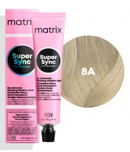 MATRIX PROFESSIONAL 8A SUPER SYNC PRE-BONDED ТОНИРУЮЩАЯ КРАСКА ДЛЯ ВОЛОС БЕЗ АММИАКА СВЕТЛЫЙ БЛОНДИН ПЕПЕЛЬНЫЙ СВЕТЛЫЙ, 90мл